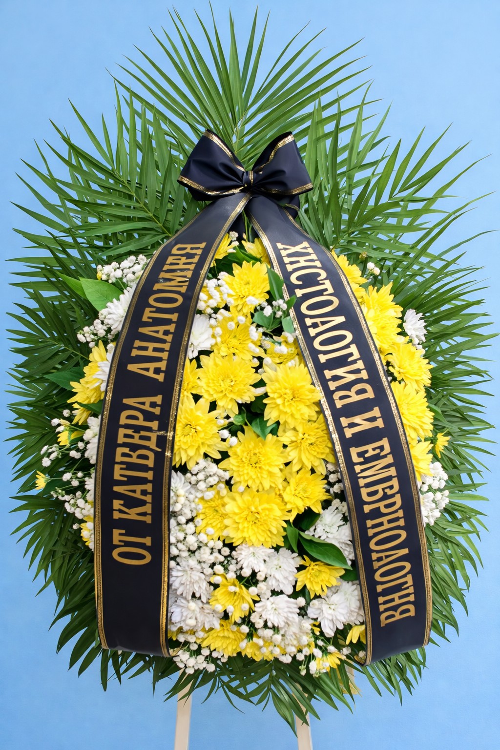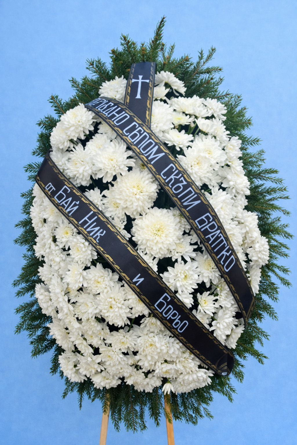 Богат асортимент от венци и аранжировки от естествени и изкуствени цветя, с надписани ленти с текст по Ваш избор. Всяка поръчка може да бъде изпълнена и доставена от Ваше име на определено място и време, както и да я получите лично в офиса ни. При невъзможност да присъствате лично на събитието, ние ще Ви изпратим снимка (на e-mail или viber) на изработените и доставени венци.